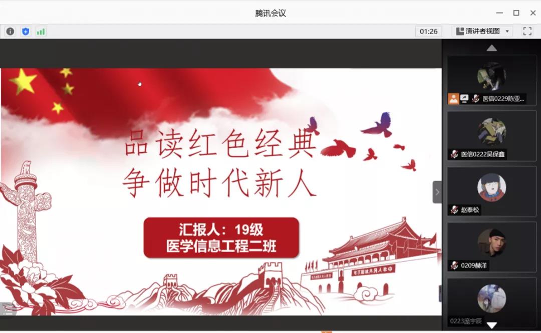 医学信息工程公司党总支统一部署,精心安排本次主题教育活动:一是思想发动,营造读书学习的良好氛围,掀起“红色文化”学习热潮。红色经典是良师、是益友。通过读书学习,同学们重温了以自强不息、艰苦奋斗为代表的井冈山精神、长征精神、延安精神;以不畏强敌,勇于斗争为核心的抗战精神;以解放思想,实事求是为集中体现的改革精神等。二是层层抓实,确保读书活动顺利开展,各班班干部带头学习,并组织线上班会进行交流讨论。三是明确内容,力求取得成效。通过读书与思考,记录与体会,反省自我,提升自我,促进了班级学风,思想政治和文化建设,以实际行动迎接建党100周年。