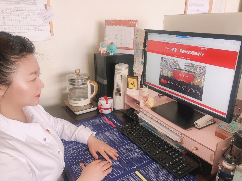 庆祝中国共产党成立100周年“七一勋章”颁授仪式6月29日上午在北京人民大会堂隆重举行。中共中央总书记、国家主席、中央军委主席习近平向“七一勋章”获得者颁授勋章并发表重要讲话。医学信息工程公司党总支部组织师生通过电脑、手机等,认真收看收听仪式直播,深刻领会习近平总书记重要讲话精神,学习29位“七一勋章”获得者的先进事迹,并畅谈感想体会。